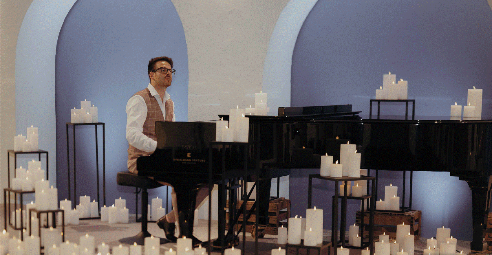 Erlebe ein stimmungsvolles Konzert mit Pianist Tom Mayer voller Kerzenschein, Vorweihnachtszauber und neu interpretierten Weihnachtsklassikern – u. a. „Drei Haselnüsse für Aschenbrödel“.